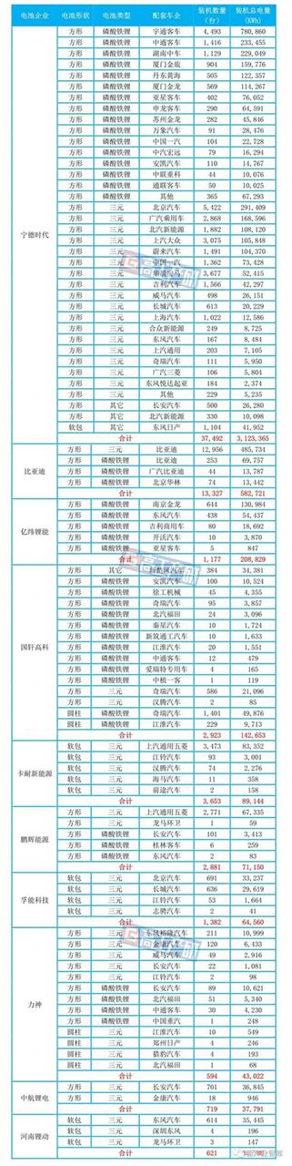與此同時,前十競爭格局發(fā)生重大變化。其中,億緯鋰能在客車市場放量,挺進裝機量排名第三;卡耐、鵬輝能源排名逐步靠前,而國軒、力神排名開始下滑;比克電池跌出前十,河南鋰動新晉前十。