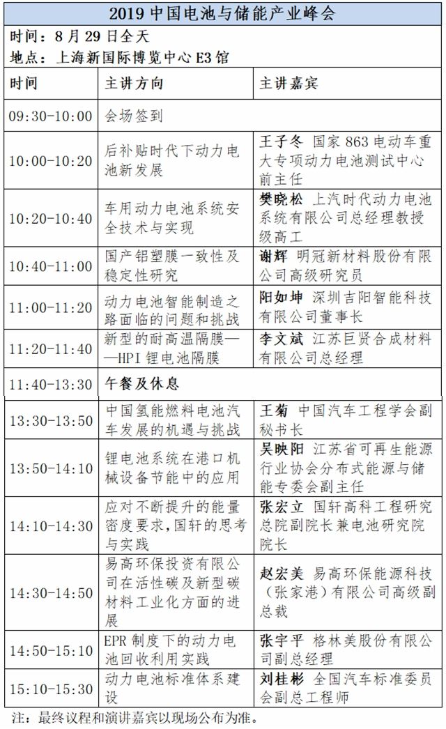 此外,截至目前確認(rèn)出席的演講嘉賓包括:國(guó)家863電動(dòng)車重大專項(xiàng)動(dòng)力電池測(cè)試中心前主任王子冬、中國(guó)汽車工程學(xué)會(huì)副秘書(shū)長(zhǎng)王菊、江蘇省可再生能源行業(yè)協(xié)會(huì)分布式能源與儲(chǔ)能專委會(huì)副主任吳映陽(yáng)、全國(guó)汽車標(biāo)準(zhǔn)委員會(huì)副總工程師劉桂彬、深圳吉陽(yáng)智能科技有限公司董事長(zhǎng)陽(yáng)如坤、國(guó)軒高科工程研究總院副院長(zhǎng)兼電池研究院院長(zhǎng)張宏立、格林美股份有限公司副總經(jīng)理張宇平、江蘇巨賢合成材料有限公司總經(jīng)理李文斌、明冠新材料股份有限公司高級(jí)研究員謝輝、易高環(huán)保能源科技(張家港)有限公司高級(jí)副總裁趙宏美等行業(yè)專家和企業(yè)高層領(lǐng)導(dǎo)。
