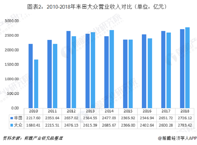 2016年,大眾品牌以1031.24萬(wàn)輛的成績(jī)拿下全球車企總銷量頭把交椅,豐田此前的“四連冠”也被大眾終結(jié),隨后大眾穩(wěn)居寶座,2018年豐田以31萬(wàn)輛的銷量差距緊隨其后。另外,在2018年十大汽車品牌銷量榜中,豐田品牌以絕對(duì)優(yōu)勢(shì)奪得冠軍。