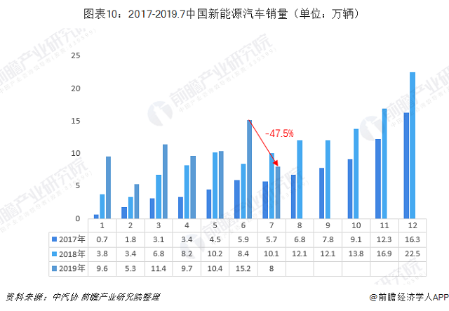 2019年8月12日,中汽協(xié)公布7月份新能源汽車銷量數(shù)據(jù)。7月新能源汽車銷量8.0萬(wàn)輛,環(huán)比下降47.5%,同比下降4.7%。其中新能源乘用車銷量為6.7萬(wàn)輛,同比下降9.4%,占比83.75%;新能源商用車銷量為1.3萬(wàn)輛,同比增長(zhǎng)29.6%,占比16.25%。1-7月新能源汽車?yán)塾?jì)銷量69.9萬(wàn)輛,同比增長(zhǎng)40.9%。