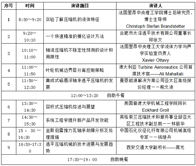 風(fēng)機(jī)、壓縮機(jī)分論壇日程安排10月17日 維景廳(7層)