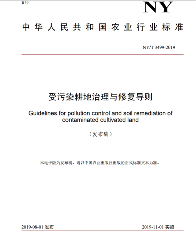 《受污染耕地治理與修復(fù)導(dǎo)則(NY/T 3499-2019)》將于2019年11月1日正式實(shí)施。