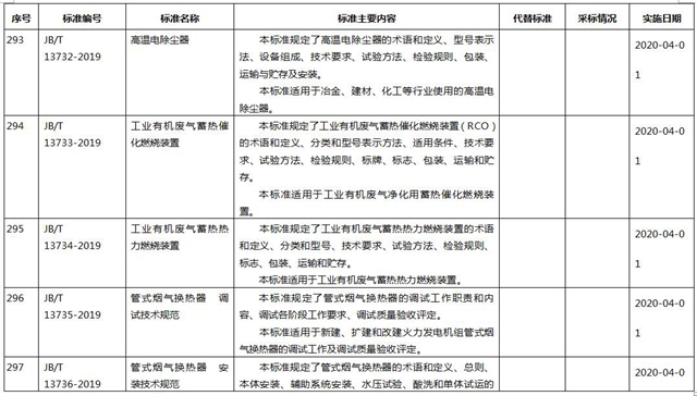 日前,工信部發(fā)布2019年第29號公告,批準《銅鋅合金粉》等436項行業(yè)標準,其中涉及高溫除塵器、煙氣換熱器、蓄熱式催化燃燒裝置等環(huán)保標準。
