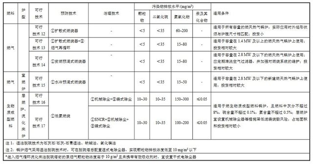 鍋爐排污單位選擇污染防治可行技術時宜綜合考慮許可排放限值、燃料性質(zhì)、爐型,及實際應用情況等。具體的大氣污染防治可行技術參見表2。
