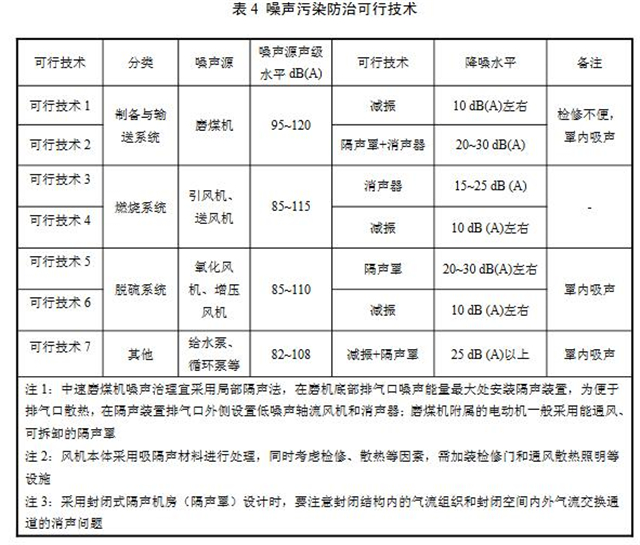 噪聲污染防治可行技術參見表4。