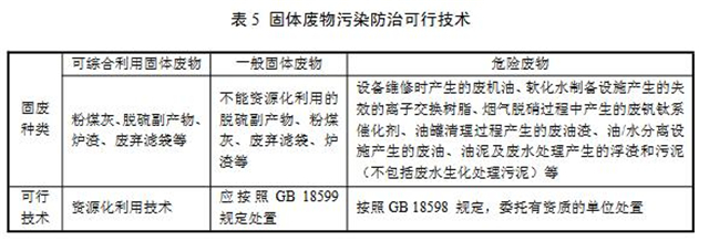 固體廢物污染防治可行技術參見表5。