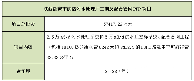 陜西延安市姚店污水處理廠二期及配套管網(wǎng)PPP項(xiàng)目