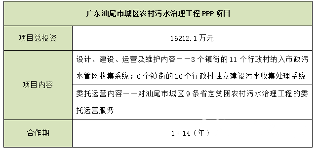 廣東汕尾市城區(qū)農(nóng)村污水治理工程PPP項(xiàng)目