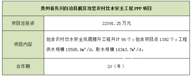 貴州省務(wù)川自治縣脫貧攻堅(jiān)農(nóng)村飲水安全工程PPP項(xiàng)目