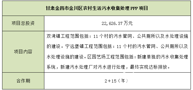 甘肅金昌市金川區(qū)農(nóng)村生活污水收集處理PPP項(xiàng)目