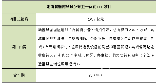 湖南省衡南縣城鄉(xiāng)環(huán)衛(wèi)一體化PPP項(xiàng)目
