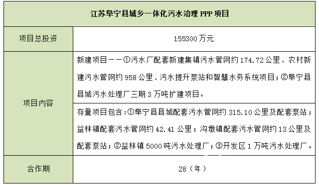江蘇阜寧縣城鄉(xiāng)一體化污水治理PPP項(xiàng)目