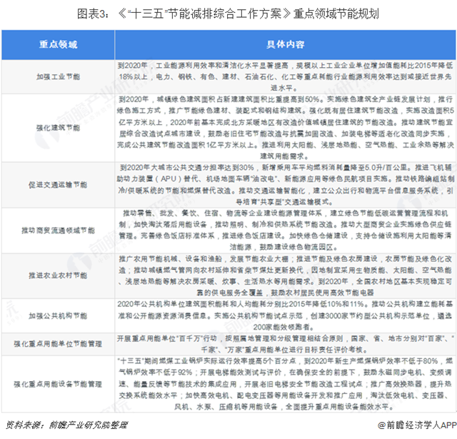2016年國(guó)務(wù)院印發(fā)《“十三五”節(jié)能減排綜合工作方案》(以下簡(jiǎn)稱《方案》),明確了“十三五”節(jié)能減排工作的主要目標(biāo)和重點(diǎn)任務(wù),對(duì)全國(guó)節(jié)能減排工作進(jìn)行全面部署。方案中指出:到2020年,全國(guó)萬(wàn)元國(guó)內(nèi)生產(chǎn)總值能耗比2015年下降15%,能源消費(fèi)總量控制在50億噸標(biāo)準(zhǔn)煤以內(nèi)。同時(shí),相應(yīng)的配套政策也已經(jīng)出臺(tái)。