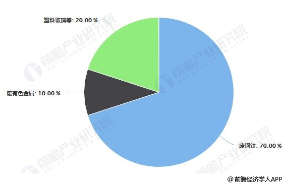報廢汽車主要物質(zhì)構(gòu)成占比統(tǒng)計情況