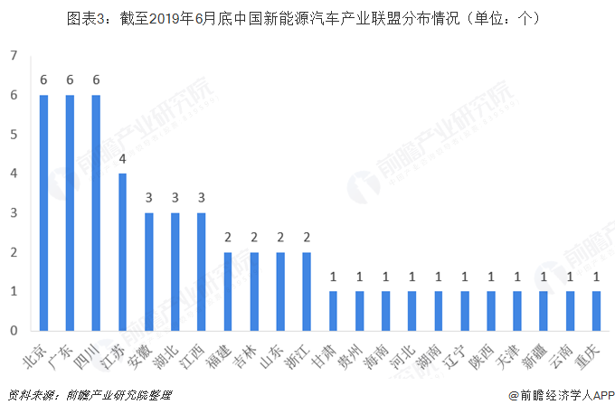 截至2019年6月底,全國各省市新能源汽車相關產(chǎn)業(yè)聯(lián)盟合計52個;其中,50個聯(lián)盟廣泛分布在全國22個省市,2個跨區(qū)域聯(lián)盟,分別是新能源及智能網(wǎng)聯(lián)汽車長三角聯(lián)盟(跨滬蘇浙皖三省一市)和京津冀新能源汽車與智能網(wǎng)聯(lián)汽車協(xié)同創(chuàng)新聯(lián)盟。