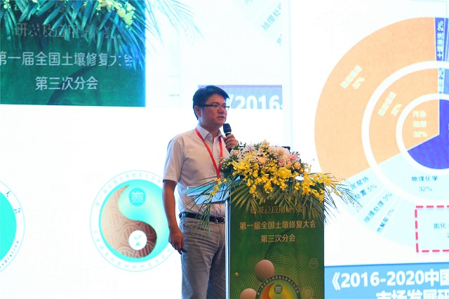 隨后,生態(tài)環(huán)境部南京環(huán)境科學(xué)研究所龍濤研究員、廣東省生態(tài)環(huán)境技術(shù)研究所李芳柏研究員、上海綠地環(huán)境科技股份有限公司方海蘭教授、中信格義循環(huán)經(jīng)濟(jì)有限公司鄒海平教授、武漢大學(xué)侯浩波教授、佛山科學(xué)技術(shù)學(xué)院王海龍教授、農(nóng)業(yè)農(nóng)村部環(huán)境保護(hù)科研監(jiān)測所梁學(xué)峰副研究員、北京潤鳴環(huán)境科技有限公司畢學(xué)博士、污染場地安全修復(fù)技術(shù)國家工程實(shí)驗(yàn)室熊靜博士、上海市環(huán)境科學(xué)研究院楊潔高級工程師、浙江工業(yè)大學(xué)潘響亮教授、中科院南京土壤研究所李柱助理研究員、生態(tài)環(huán)境部土壤中心周燕工程師、中科院南京土壤研究所滕應(yīng)研究員、華南理工大學(xué)郭楚玲副教授、江蘇大地益源環(huán)境修復(fù)有限公司單暉峰教授級高工、中科院南京土壤研究所劉五星研究員、北京化工大學(xué)馮擁軍教授、南京農(nóng)業(yè)大學(xué)潘根興教授、中科院煙臺海岸帶研究所涂晨助理研究員、上海速宜環(huán)境科技有限公司崔紅斌總工程師、上?;ぱ芯吭簭堥L波高級工程師等22位行業(yè)內(nèi)頗具影響力的學(xué)者專家圍繞三大主題分別進(jìn)行了精彩演講,會議一直持續(xù)到下午18點(diǎn)50分,讓現(xiàn)場來賓享受了一場土壤修復(fù)知識的饕餮盛宴,現(xiàn)場掌聲熱烈、提問踴躍,收到了良好的會議效果。