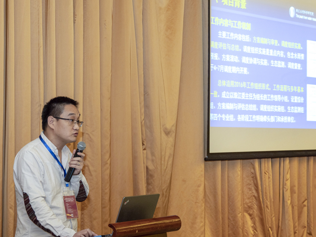 珠江水利委員會(huì)珠江水利科學(xué)研究院水生態(tài)室副主任王建國(guó)作《西江流域魚(yú)類(lèi)繁殖期水量調(diào)度試驗(yàn)研究生態(tài)效果評(píng)估探析》的報(bào)告