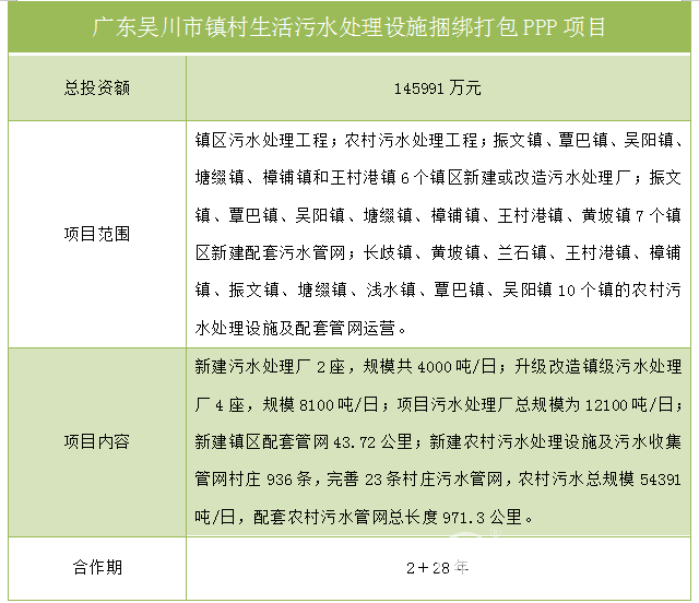 廣東吳川市鎮(zhèn)村生活污水處理設(shè)施捆綁打包PPP項(xiàng)目