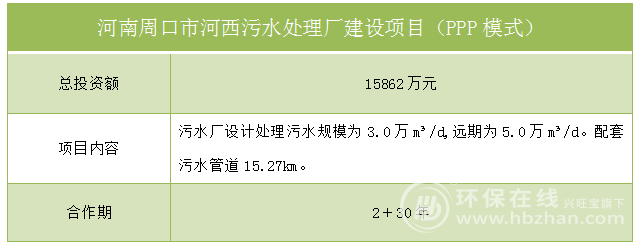 河南周口市河西污水處理廠建設(shè)項(xiàng)目(PPP模式)