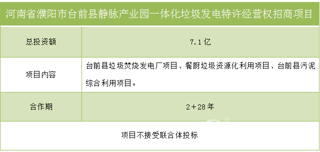 河南省濮陽(yáng)市臺(tái)前縣靜脈產(chǎn)業(yè)園一體化垃圾發(fā)電特許經(jīng)營(yíng)權(quán)招商項(xiàng)目