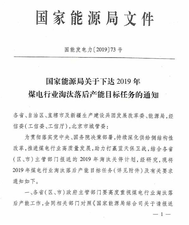 日前,國家能源局發(fā)布了《關(guān)于國家能源局關(guān)于下達(dá)2019年煤電行業(yè)淘汰落后產(chǎn)能目標(biāo)任務(wù)的通知》(以下簡稱:《通知》),對(duì)今年煤電落后產(chǎn)能淘汰工作下達(dá)了任務(wù)量。