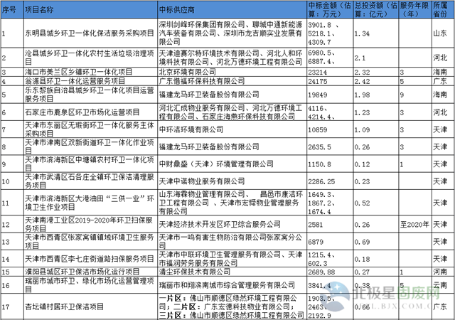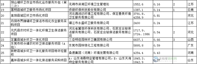 附千萬級以上環(huán)衛(wèi)項目中標情況匯總