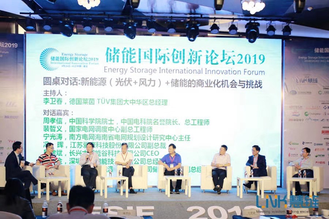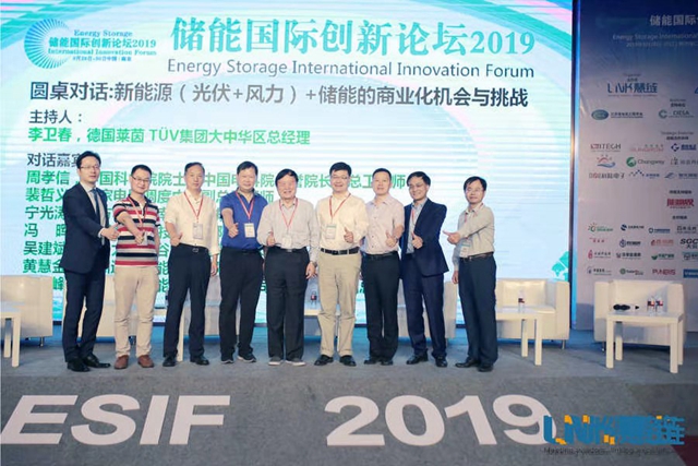全體大會最后,由德國萊茵 TÜV集團大中華區(qū)總經(jīng)理李衛(wèi)春主持圓桌對話,周孝信院士、裴哲義副總工、寧光濤主任、江蘇愛康馮暉副總裁、太湖能谷吳建斌博士、邁格瑞能黃慧金總經(jīng)理、東方日升儲能事業(yè)部秦宇峰副總經(jīng)理、金風(fēng)科技劉日新副總裁參與,共同圍繞新能源(光伏+風(fēng)力)+儲能的商業(yè)化機會與挑戰(zhàn)做了精彩討論。