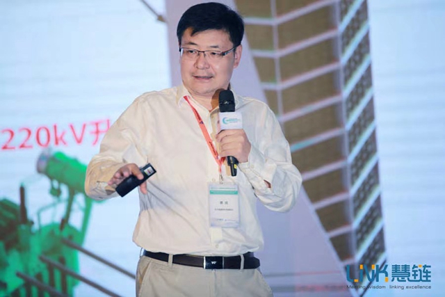 上海交大能源研究院副院長蔡旭就百MW級高壓體系電池儲能系統(tǒng)發(fā)表演講。