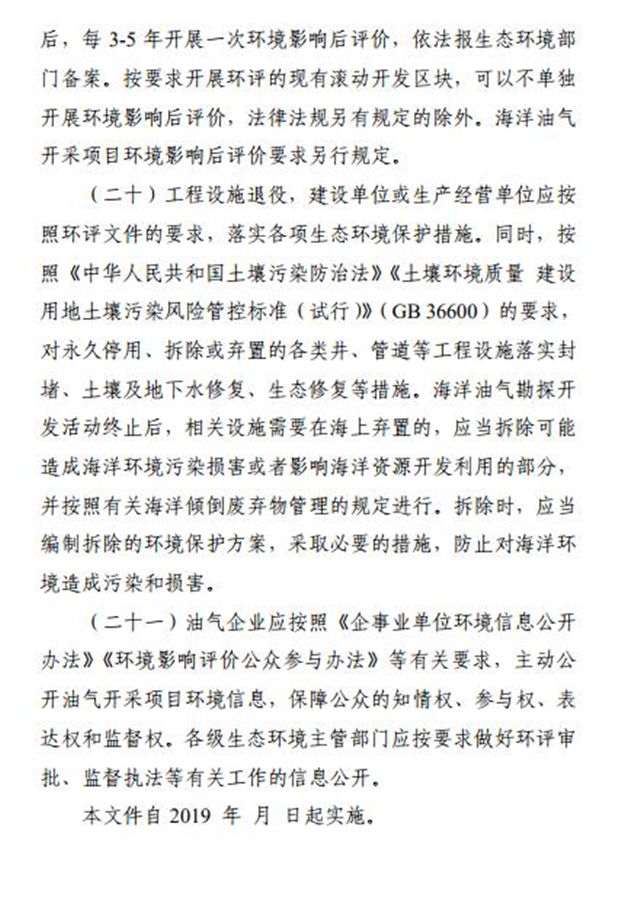 《關(guān)于進(jìn)一步加強石油天然氣行業(yè)環(huán)境影響評價管理的通知(征求意見稿)》征求意見