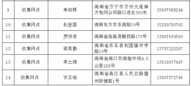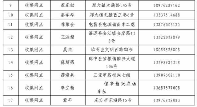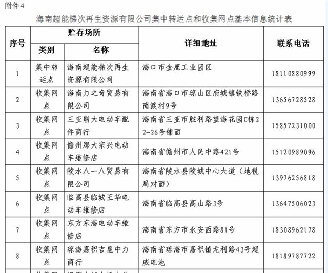 4. 海南超能梯次再生資源有限公司集中轉(zhuǎn)運點和收集網(wǎng)點基本信息統(tǒng)計表