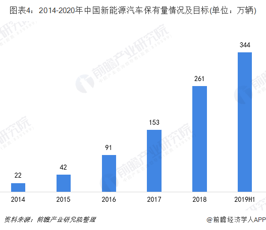 公安部交管局統(tǒng)計的數(shù)據(jù)顯示看,截至2019年6月,全國新能源汽車保有量達344萬輛,占汽車總量的1.37%,相比2018年年底增加83萬輛,增長31.87%。我國計劃于2020年實現(xiàn)500萬輛的新能源汽車保有量,截至到2019年6月底,完成率為68.8%,照這一增速2020年預(yù)計目標(biāo)有望實現(xiàn)。