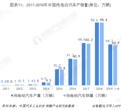 (1)2018年純電動汽車產(chǎn)銷量近百萬輛