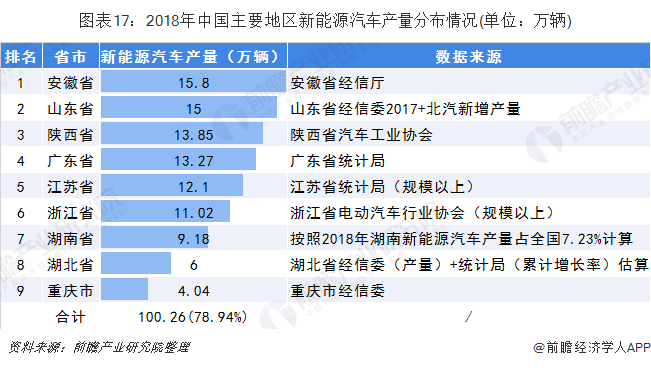 從供給端來看,安徽是新能源汽車行業(yè)“一哥”,2018年安徽省產(chǎn)量全國第一;陜西是新能源汽車行業(yè)“黑馬”,西安比亞迪在西安高新區(qū)一期的新能源汽車生產(chǎn)產(chǎn)能已經(jīng)達到每年30萬輛的水平。2019年,總投資20.93億元的比亞迪汽車第二工廠的新能源乘用車擴建項目(年產(chǎn)30萬輛、年產(chǎn)值400億元)已經(jīng)動工。