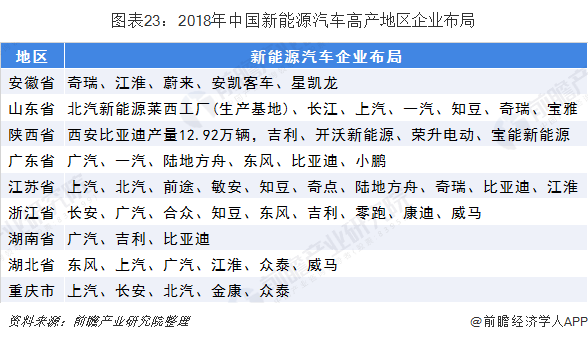 ——企業(yè):安徽有“江淮+奇瑞”兩大車企加持,山東有北汽,陜西有比亞迪