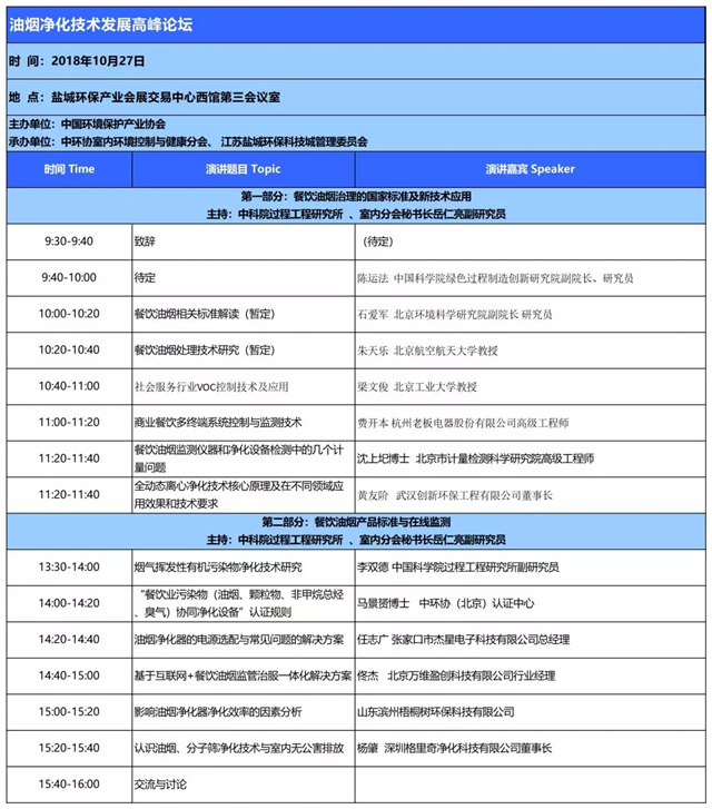 油煙凈化技術(shù)發(fā)展高峰論壇