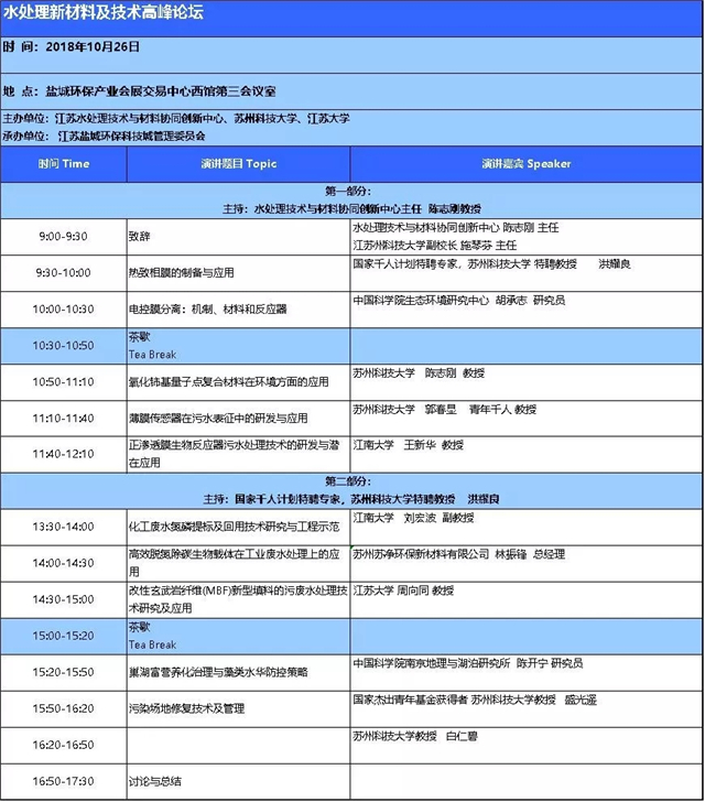 水處理新材料及技術(shù)高峰論壇