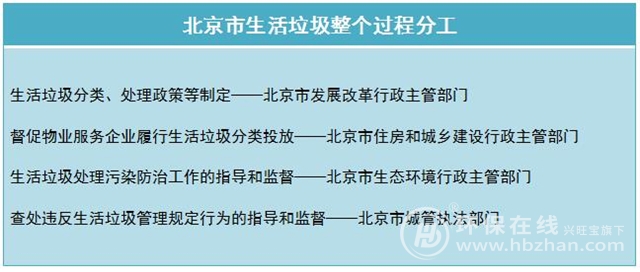 整個(gè)垃圾分類過(guò)程中,政策規(guī)章等制定、監(jiān)督和執(zhí)行處罰等責(zé)任主體,北京也進(jìn)行了明確,并要求城市中的各個(gè)管理部門(mén)之間,相互協(xié)調(diào)配合,共同做好生活垃圾管理的相關(guān)工作。