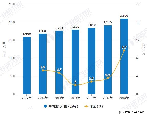 2012-2018年中國氫氣產(chǎn)量統(tǒng)計及增長情況