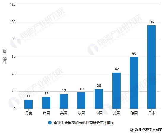 2018年全球主要國家加氫站擁有量分布情況