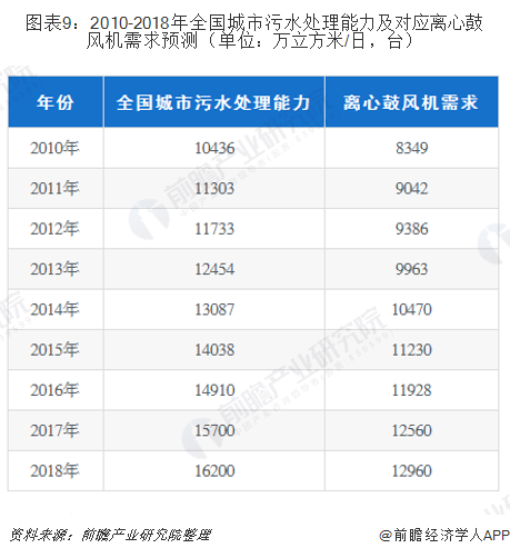 根據(jù)歷年數(shù)據(jù)和規(guī)劃進(jìn)行測(cè)算,2018年城市污水處理廠數(shù)量會(huì)略有提升,達(dá)到2300個(gè)左右,污水廠日處理能力達(dá)到1.62億立方米/日,按照日處理能力50000噸配比4臺(tái)高壓離心鼓風(fēng)機(jī)的比例,2018年我國(guó)城市污水處理所需高壓離心鼓風(fēng)機(jī)數(shù)量為12960臺(tái)。