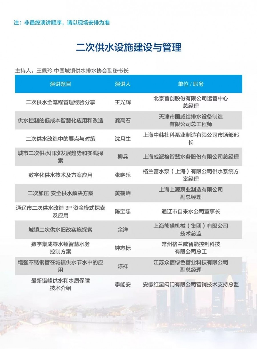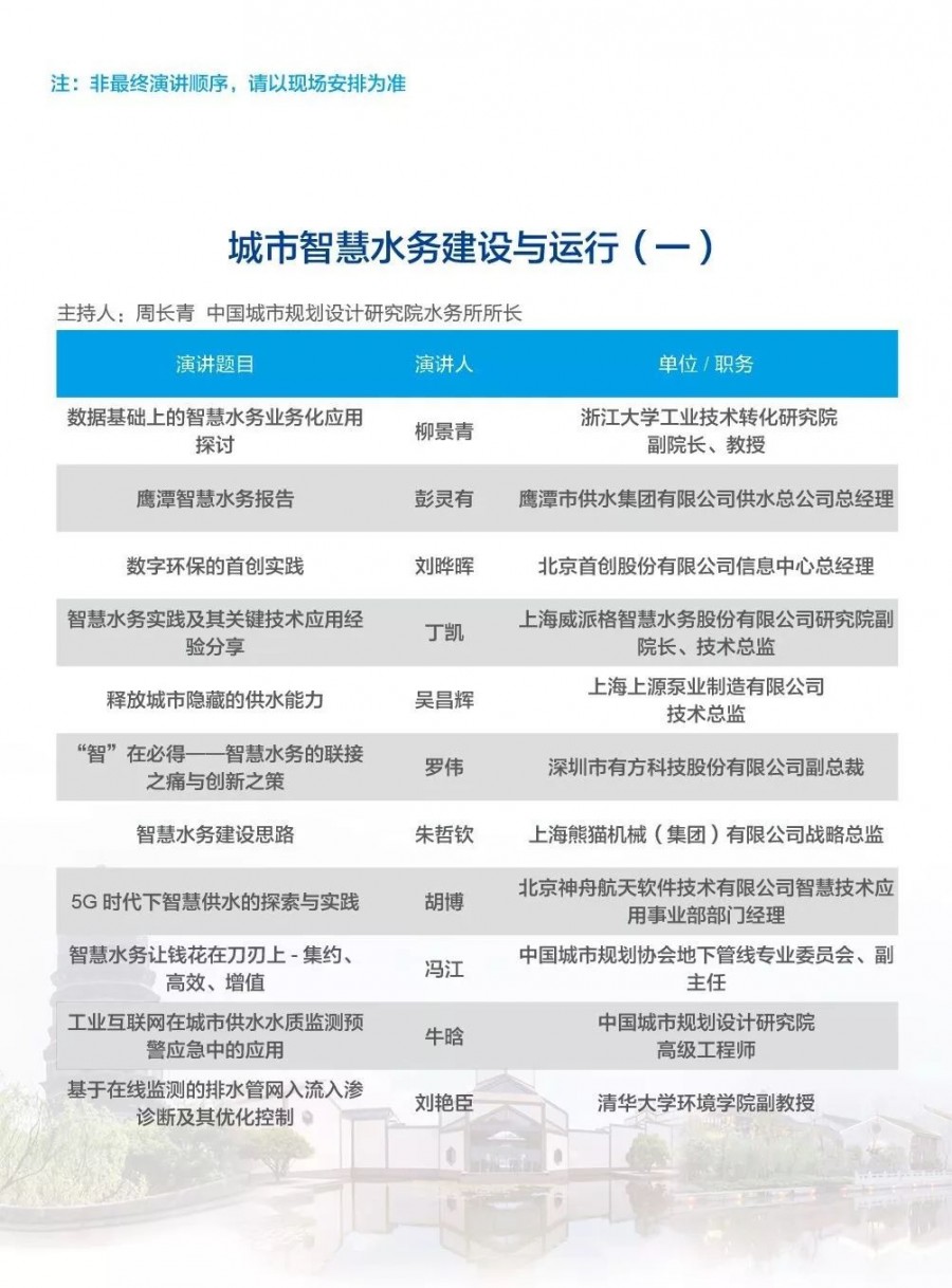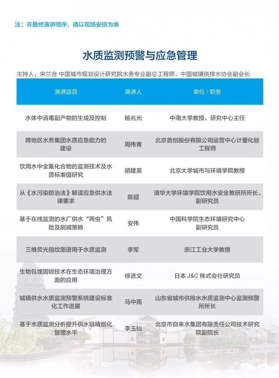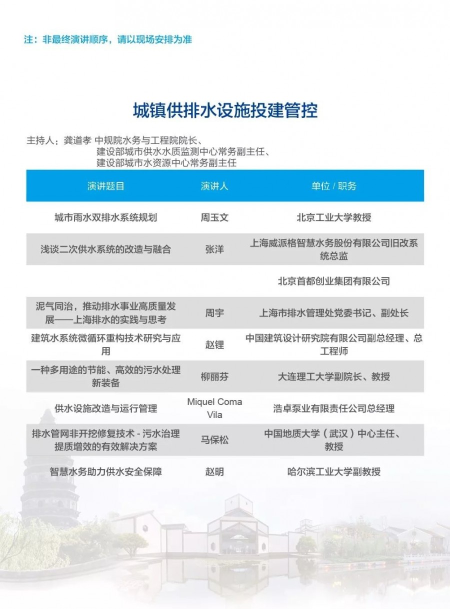 除以上分論壇外,蘇州論壇——高品質(zhì)水公共產(chǎn)品研討會(huì)、建筑節(jié)水論壇、二供節(jié)能與供水安全保障、城鎮(zhèn)水環(huán)境綜合整治與管理、中-法水務(wù)科技論壇、長(zhǎng)三角一體化水務(wù)發(fā)展論壇等論壇議程正在確認(rèn)中……敬請(qǐng)期待!
