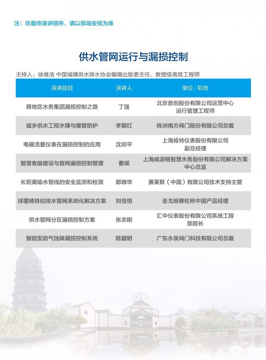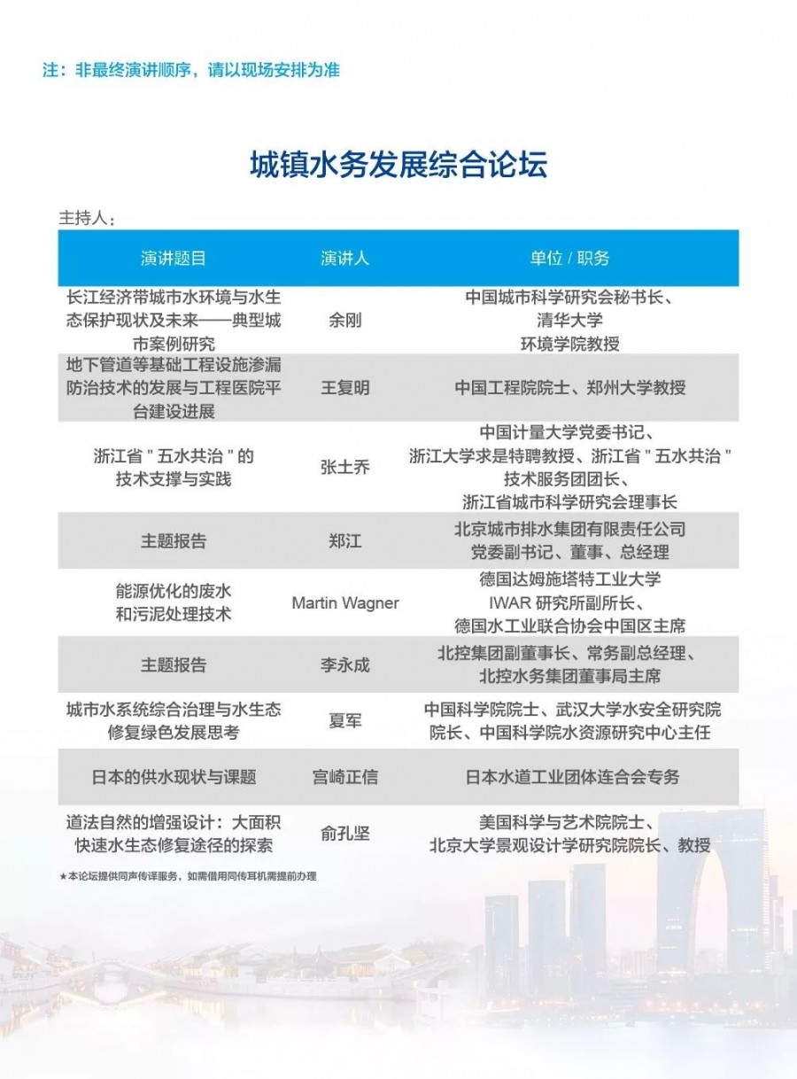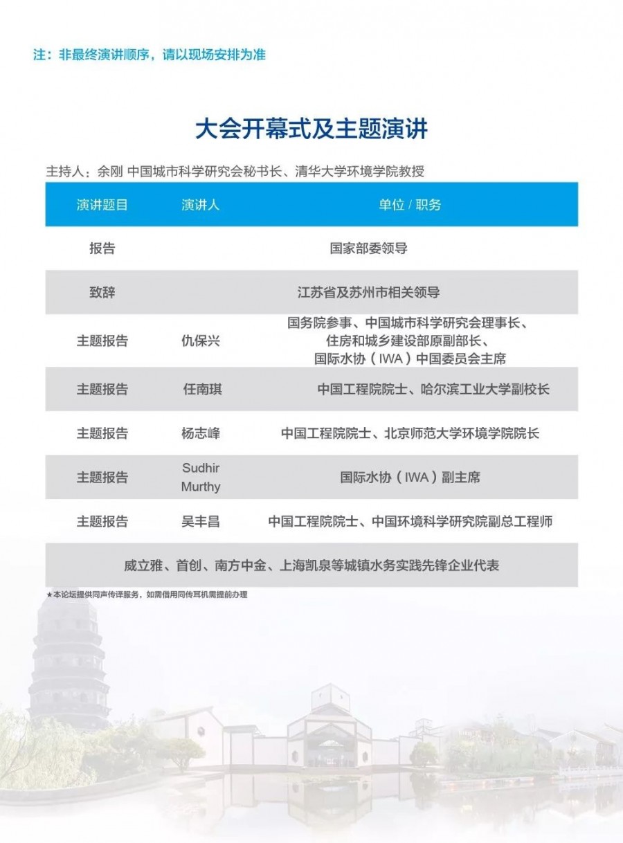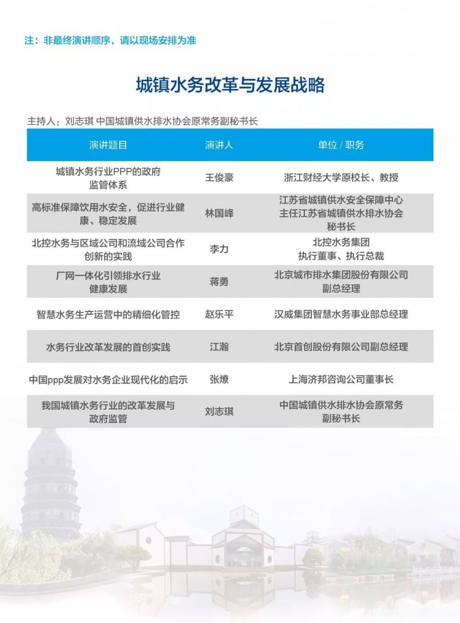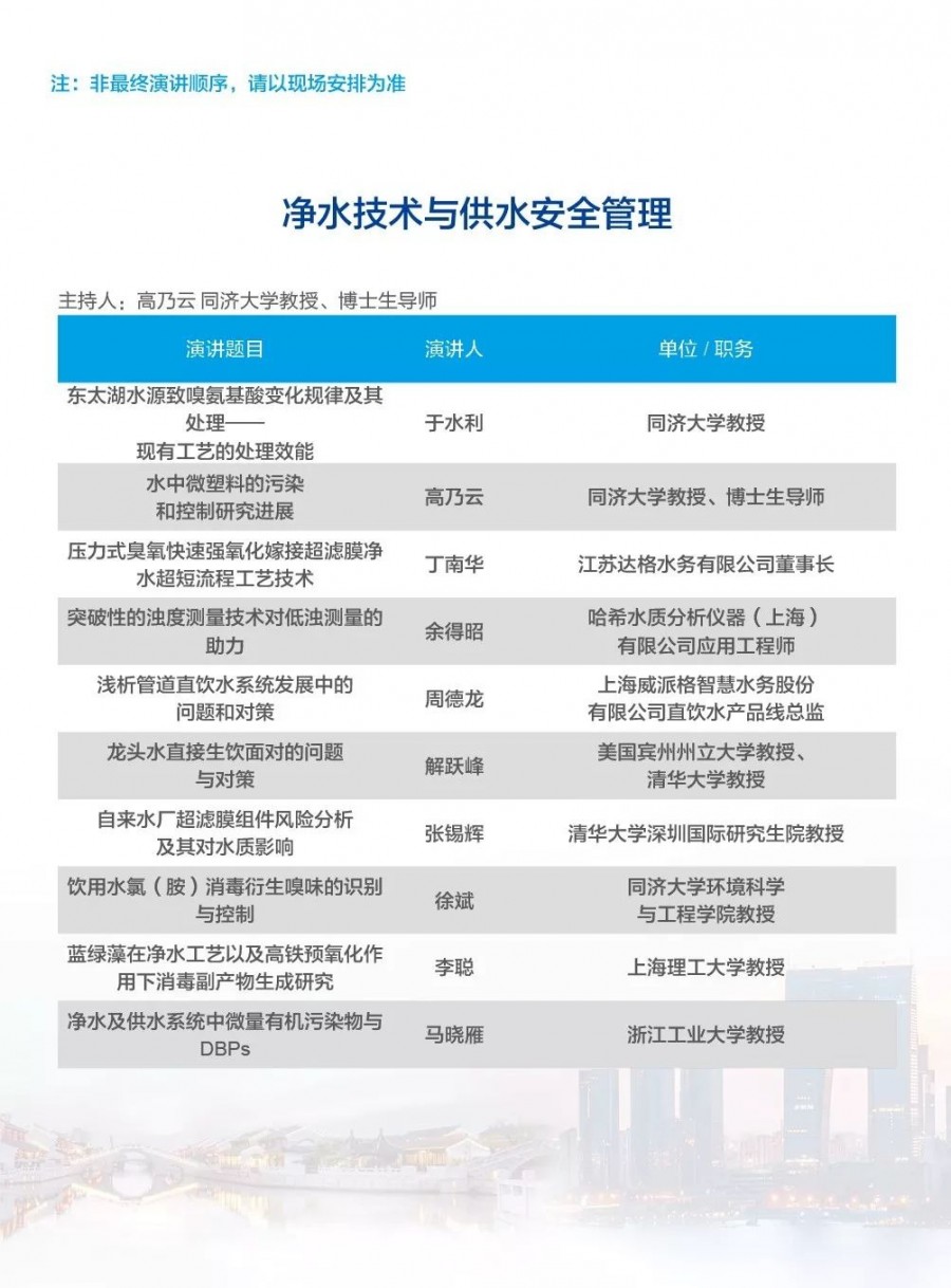 除以上分論壇外,蘇州論壇——高品質(zhì)水公共產(chǎn)品研討會(huì)、建筑節(jié)水論壇、二供節(jié)能與供水安全保障、城鎮(zhèn)水環(huán)境綜合整治與管理、中-法水務(wù)科技論壇、長(zhǎng)三角一體化水務(wù)發(fā)展論壇等論壇議程正在確認(rèn)中……敬請(qǐng)期待!