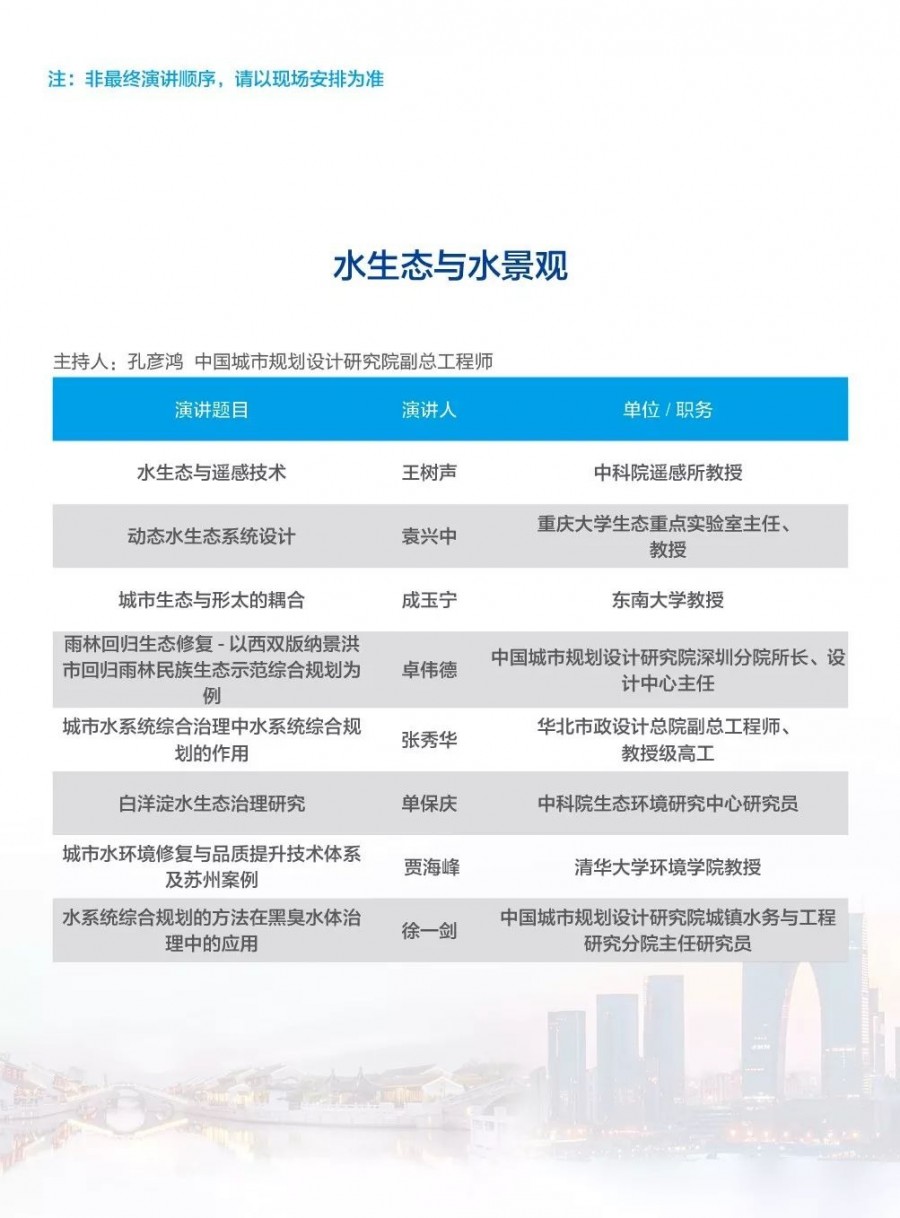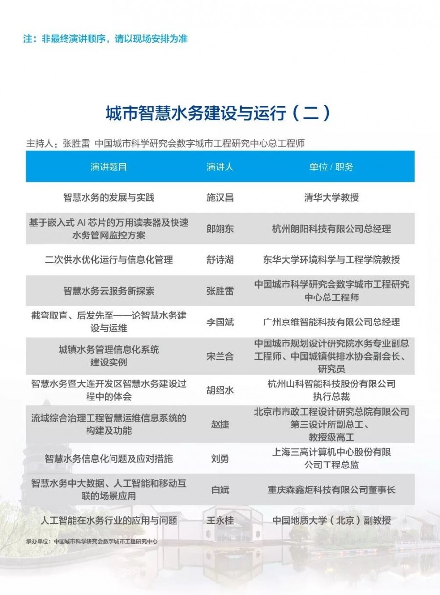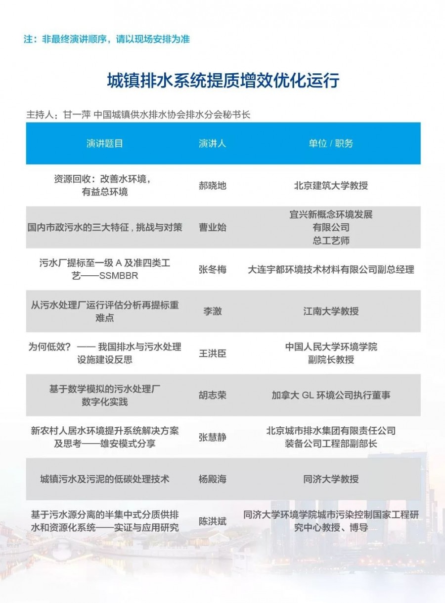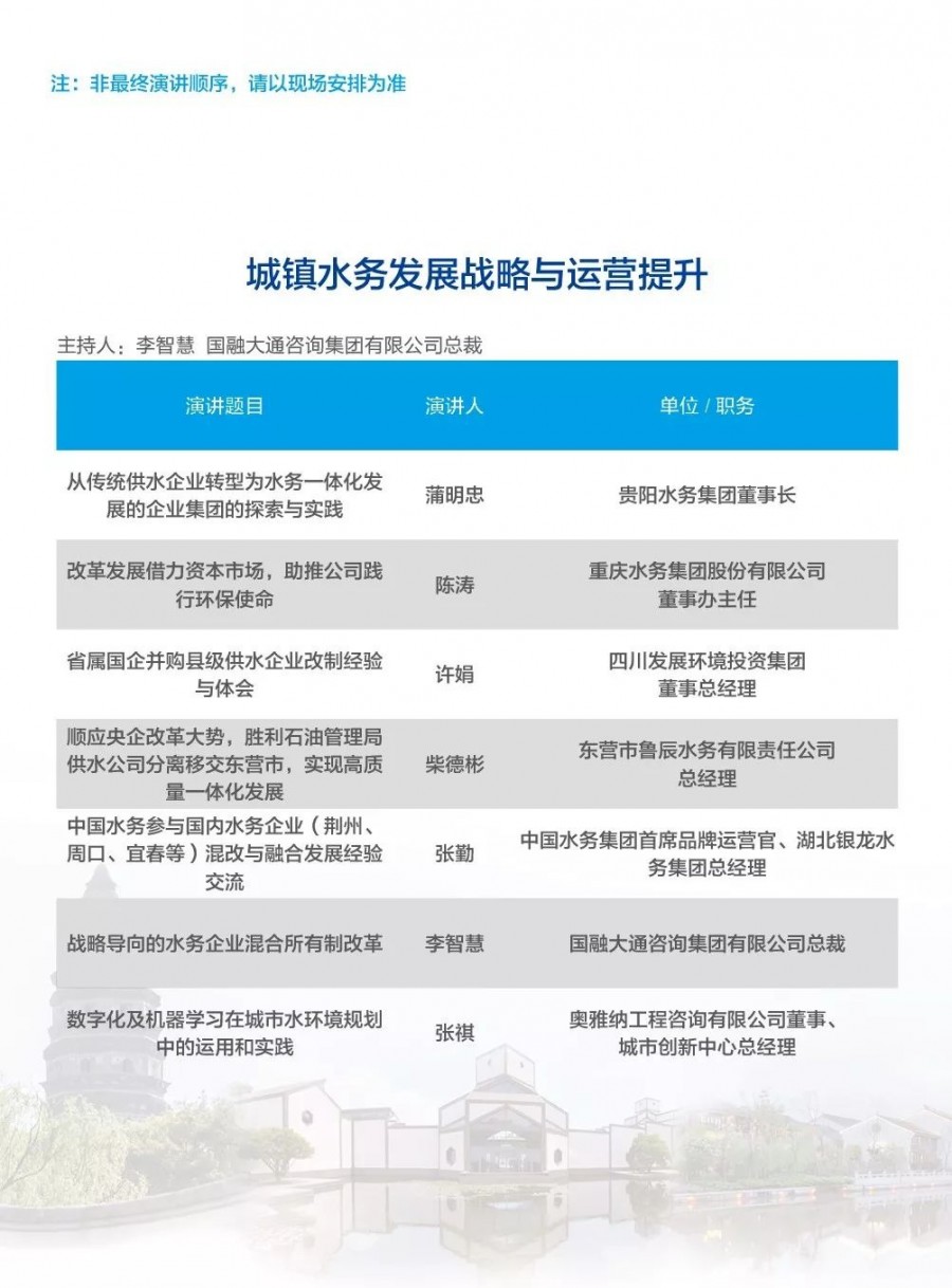 除以上分論壇外,蘇州論壇——高品質(zhì)水公共產(chǎn)品研討會(huì)、建筑節(jié)水論壇、二供節(jié)能與供水安全保障、城鎮(zhèn)水環(huán)境綜合整治與管理、中-法水務(wù)科技論壇、長(zhǎng)三角一體化水務(wù)發(fā)展論壇等論壇議程正在確認(rèn)中……敬請(qǐng)期待!