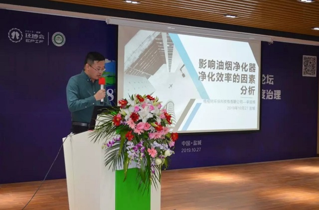 山東梧桐樹環(huán)保科技有限公司辛國輝董事長在會(huì)上和大家分享了對(duì)影響油煙凈化器凈化效率的因素分析。