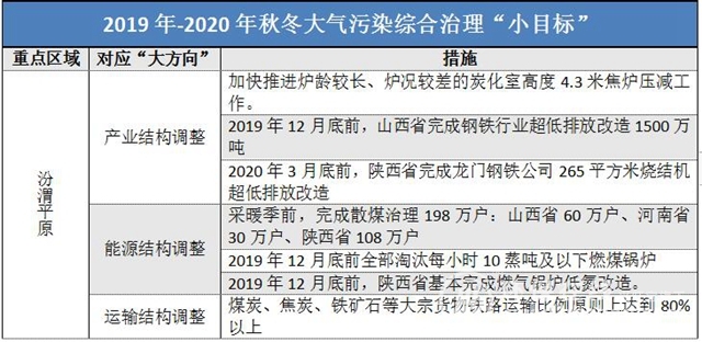 汾渭平原——①加快焦化行業(yè)結(jié)構(gòu)升級,淘汰老舊焦?fàn)t②加大散煤整治,2019采暖季前完成198萬戶③推進(jìn)煤炭和焦炭運(yùn)輸“公轉(zhuǎn)鐵”