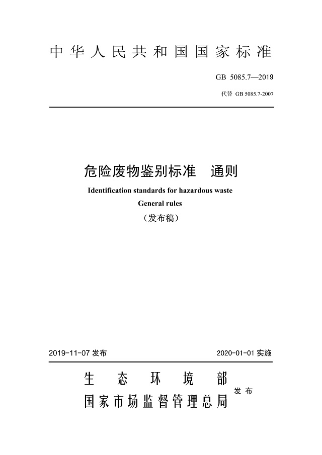 以上標準自2020年1月1日起實施,自實施之日起,《危險廢物鑒別標準 通則》(GB 5085.7-2007)廢止。