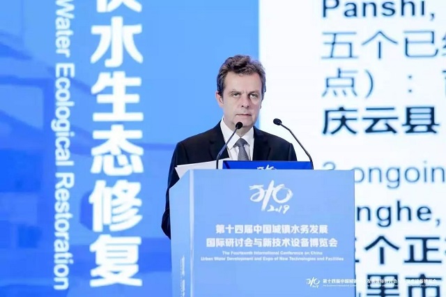Etienne Crépon在主論壇上發(fā)表演講《中法生態(tài)城市項目中水資源的可持續(xù)和自然管理》。在演講中,他介紹到法國建筑科學(xué)技術(shù)中心是法國國家公立機構(gòu),其任務(wù)是向建造業(yè)和城市規(guī)劃的利益相關(guān)者提供專業(yè)知識,以支持項目的創(chuàng)新、質(zhì)量和安全。他表示,CSTB與中國部分城市已經(jīng)進行了很多深入的合作,在凱里、榆中和天津?qū)幒拥闹蟹ㄉ鷳B(tài)城中,結(jié)合地方區(qū)域性特點,CSTB為生態(tài)城建設(shè)制定了優(yōu)秀的水管理相關(guān)系統(tǒng)設(shè)計和解決方案。