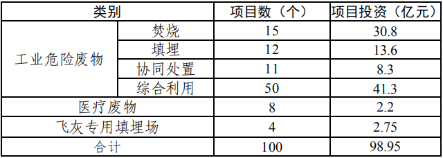 2019年-2020年,浙江省計劃新(擴)建100個危險廢物利用處置設(shè)施建設(shè)項目,總投資近99億元。