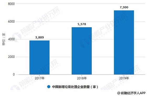 20117-2019年中國(guó)新增垃圾處理企業(yè)數(shù)量統(tǒng)計(jì)情況及預(yù)測(cè)