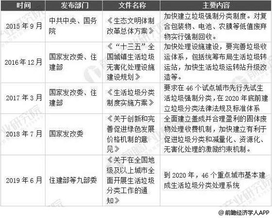 2015-2019年中國(guó)垃圾分類(lèi)相關(guān)政策匯總情況